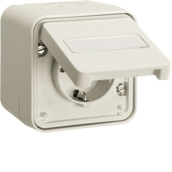 Steckdose SCHUKO mit Klappdeckel AP, W.1, polarweiß matt