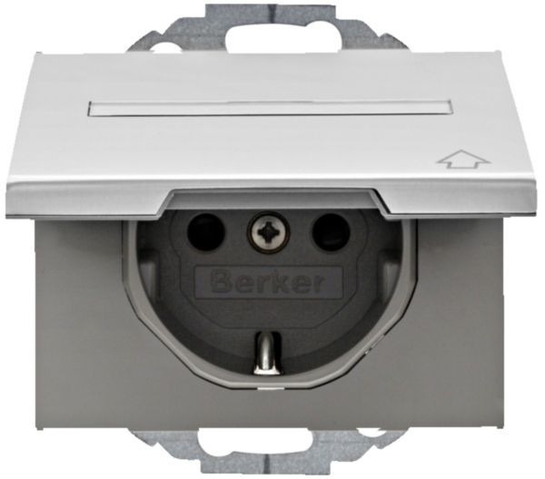 Steckdose SCHUKO mit Klappdeckel und Beschriftungsfeld K.5 Alu