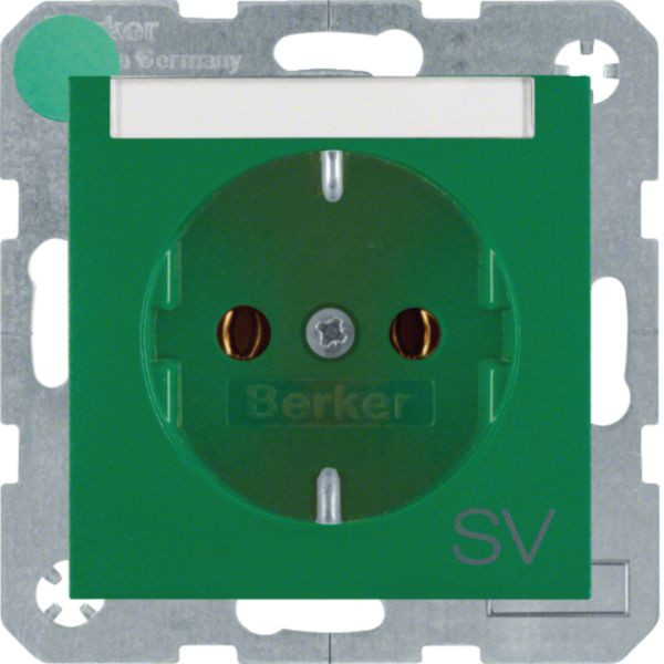 Steckdose SCHUKO mit Beschriftungsfeld und Aufdruck S.1/B.3/B.7 grün, matt