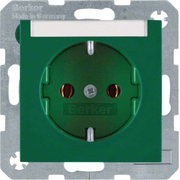 Steckdose SCHUKO mit Beschriftungsfeld S.1/B.3/B.7 grün, glänzend