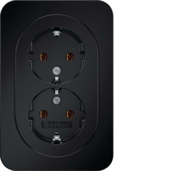 Doppelsteckdose SCHUKO mit Abdeckplatte, Berker R.1, schwarz glänzend