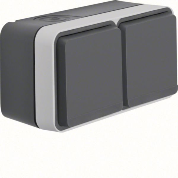Steckdose SCHUKO 2f waag. m. Klappdeckel mit erh. Berührungsschutz, W.1, grau