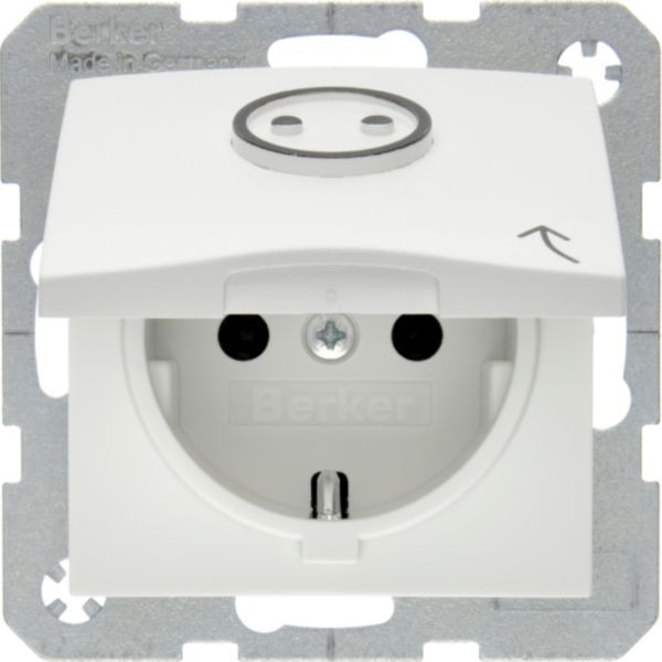 Steckdose SCHUKO mit Klappdeckel und abtastbarem Symbol S.1/B.x polarweiß matt