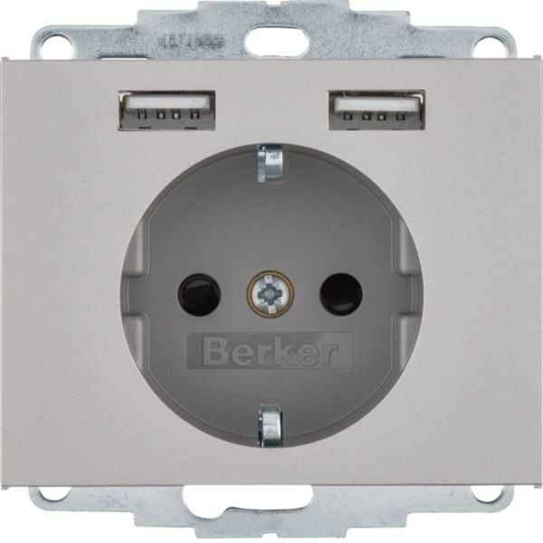 Steckdose SCHUKO/USB A-A, K.5, edelstahl matt, lackiert