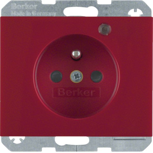 Steckdose mit Schutzkontaktstift, Kontroll-LED u. erh.BS K.1 rot, glänzend