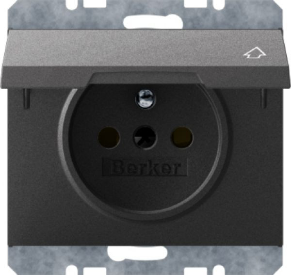 Steckdose mit Schutzkontaktstift, Klappdeckel und erh.BS K.1 anthrazit, matt