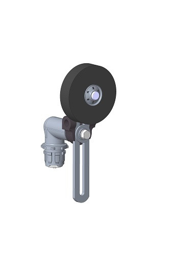 Ersatzbetätiger/AVGU RO50-Einrichtung (Schwenkhebel verstellbar, Metallhebel mit Gummirolle / Hebel in 15 ° Schritten einstellbar) für Positionsschalter Typ IN73/MN78…AVGU RO50. Die Betätigungseinrichtung kann von 2 Seiten angefahren werden. Durch Ziehen der Spange besteht die Möglichkeit, die