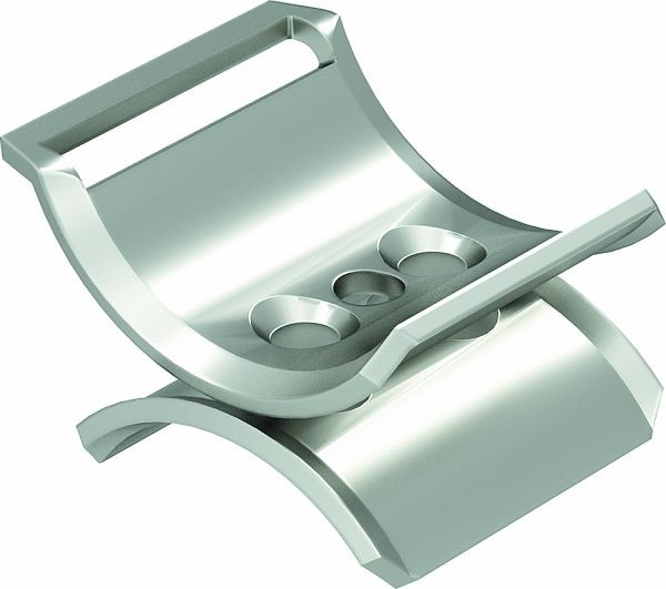 Doppelwanne aus Metall als Zwischenlage zwischen zwei oder drei Kabeln innerhalb einer Bügelschelle.