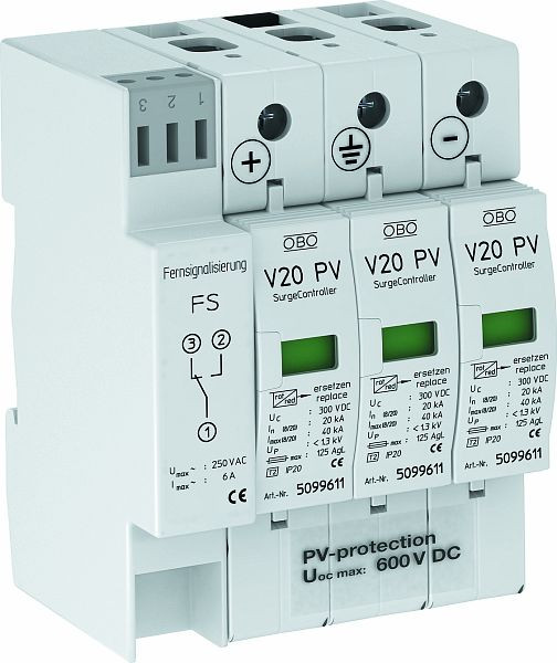 | Kurzbeschreibung | SurgeController V20 dreipolig für PV-Anlagen + FS 600V DC |