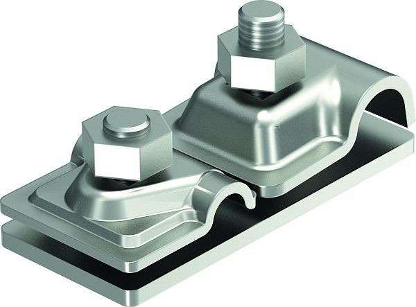 Anschlussplatte zum Verbinden einer isCon-Leitung mit Fangstange Ø 16 mm. Geprüft bis zu 150 kA (Blitzschutzklasse II).