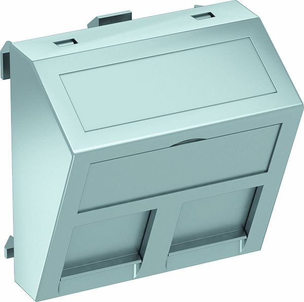 Datentechnikträger mit schrägem Auslass und Verschlussschieber zur Aufnahme von zwei Datentechnik-Anschlussmodulen mit RJ45-Buchse. Die Rastbefestigung eignet sich für den waagerechten und senkrechten Einbau in die Systemumgebung. Typ C hat eine Montageöffnung von 19,30 X 14,80 mm und ist für die direkte Befestigung der Daten-Anschlussmodule in der Montageöffnung ausgelegt.
