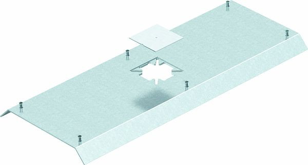 Geräteanschlussdeckel für Abzweigkanalunterteil AIKA/U für den Aufbau eines Telitanks. Der Kanaldeckel wird in den Al-Seitenprofilen des Kanalunterteils festgeschraubt. Die Deckelschräge überragt das Kanalunterteil beidseitig im 45°-Winkel.