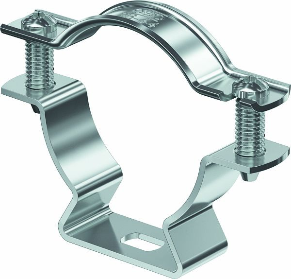 Abstandschelle zur Montage von Rohren und Kabeln an Wand, Decke und Boden. Mit selbstsicherndem Oberteil. Befestigung über Langloch.