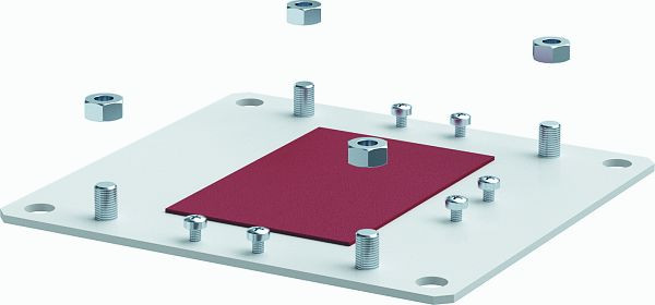Adapterplatte für abgehängte Montage des T-Abzweigs BSKM-TA 0407, mit Aufnahmemöglichkeit für Gewindestangen M10, inklusive Muttern.