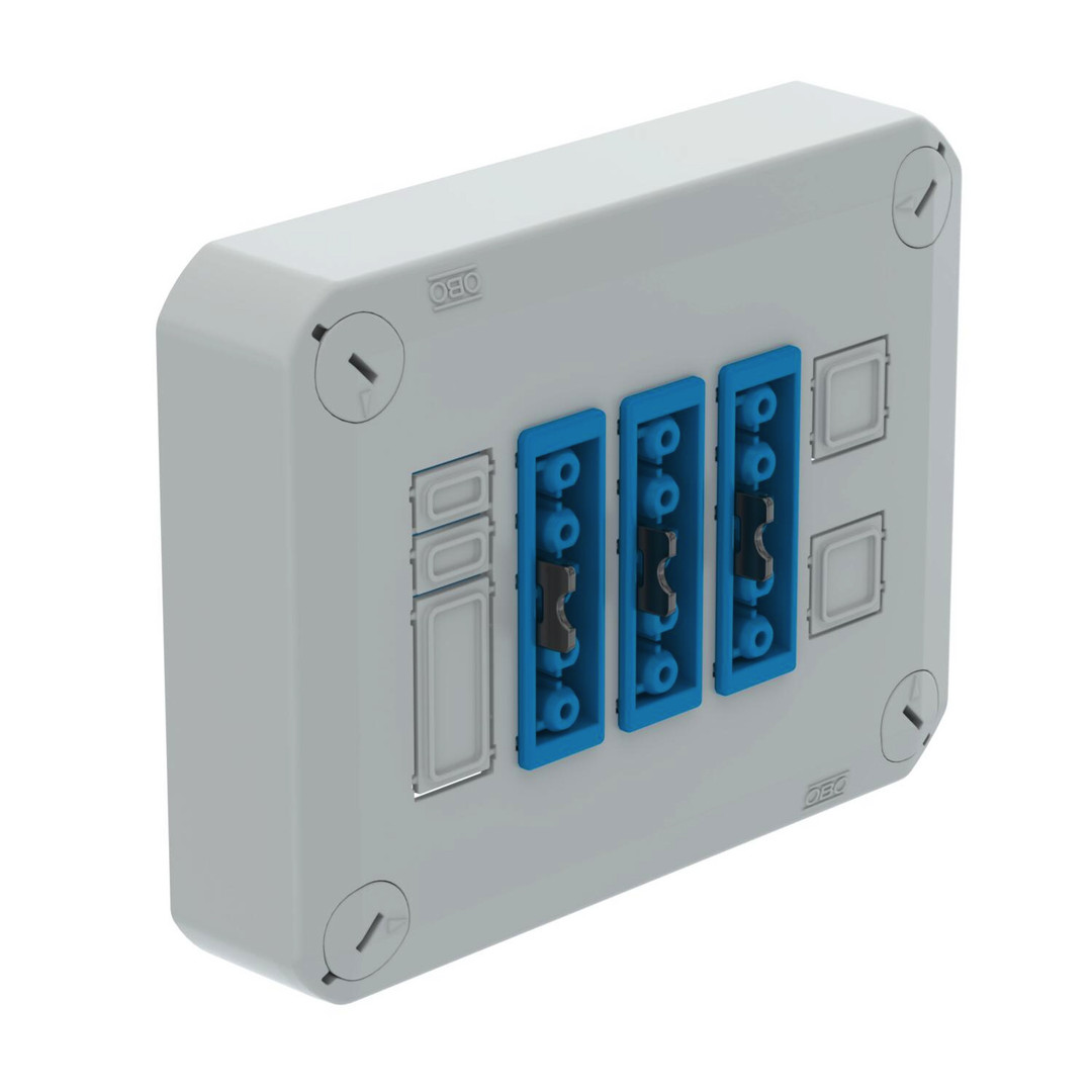 Steckbarer Deckel zum Verschließen von Kabelabzweigkästen, bestückt mit 3 Wieland GST18-Stecksystemen, vorverdrahtet mit Hebelsteckklemmen. Mit Schnellverschluss im Deckel, plombierbar. Halogenfreies Material, UV-resistent. Flammwidrig nach DIN EN 60695-2-11, Prüftemperatur 650°C. Schlagfestigkeit IK07 bei Raumtemperatur. Schutzart IP30.