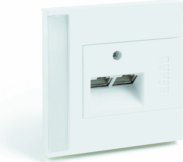 Signa In Datenblende 80 x 80 mm für Cat. 6-Datengeräte mit 2 Auslässen, optisch passend zu den Kanalsteckdosen Signa In. 2-teilige Abdeckung/Blende, bestehend aus Blende/Rahmen und Zentralplatte.