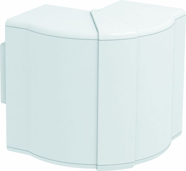 Außeneck-Haubenformteil aus halogenfreiem PC/ABS zur Richtungsänderung von Geräteeinbaukanälen Rapid 80 der Systeme GK, GKH, GS und GA. Die Formteile sind variabel von 80° - 100° verstellbar und einsetzbar für symmetrische und asymmetrische Kanäle.
