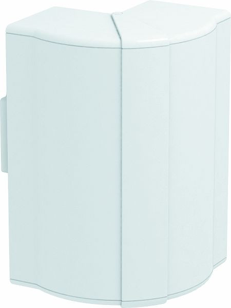 Außeneck-Haubenformteil aus halogenfreiem PC/ABS zur Richtungsänderung von Geräteeinbaukanälen Rapid 80 der Systeme GK, GKH, GS und GA. Die Formteile sind variabel von 80° - 100° verstellbar und einsetzbar für symmetrische und asymmetrische Kanäle.
