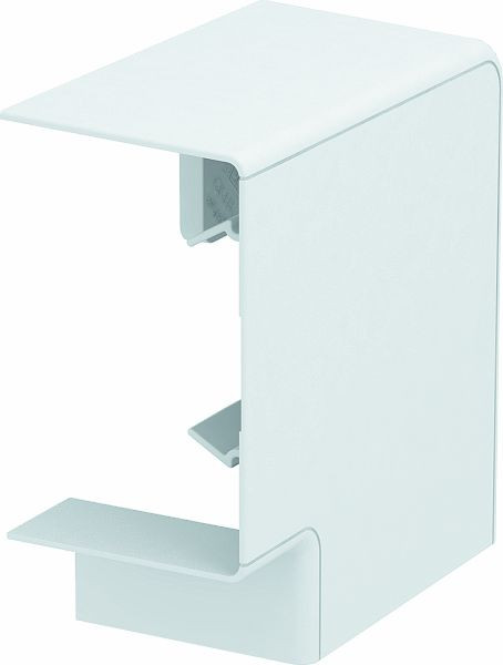 Flachwinkel-Haubenformteil aus halogenfreiem PC/ABS zur einfachen Erstellung einer steigenden oder fallenden 90° Richtungsänderung mit Geräteeinbaukanal der Serie Rapid 80 GK, GKH, GS und GA. Das Flachwinkel- Haubenformteil ist einsetzbar für symmetrische und asymmetrische Kanaltypen.