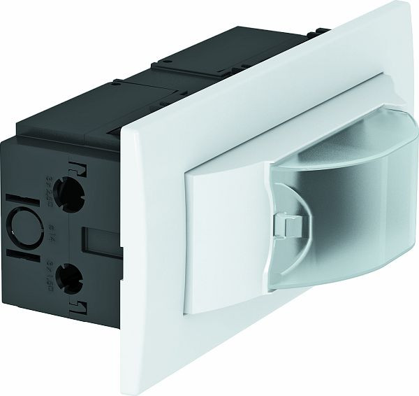 Einbaueinheit zur Aufnahme von Schutzeinrichtungen wie Sicherungsautomaten oder FI-Schutzschalter von 2 TE, geeignet für den Einbau in Geräteeinbau-Kanalsysteme Rapid 80 und Installationssäulen ISS.
