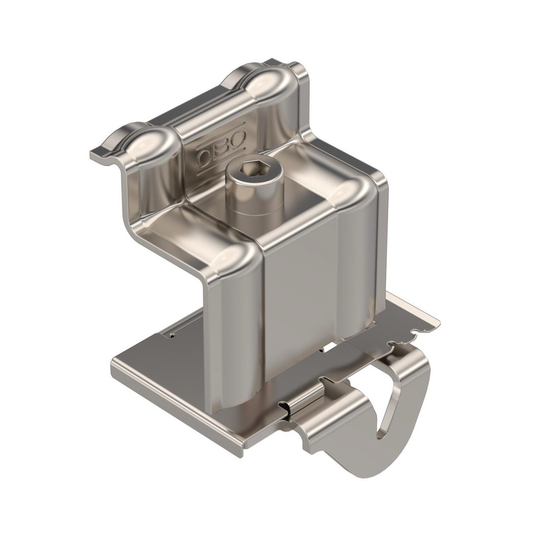 Endklemme zum Befestigen von Photovoltaik-Modulen auf Trägerprofilen von Freiflächensystemen. Rastbare Vorbefestigung der Modulrahmen an Trägerpofil. Geeignet für Schlitzweite 10 mm. Schraubbare Befestigung des PV-Moduls mit Innensechskant-Schlüssel Größe 6.