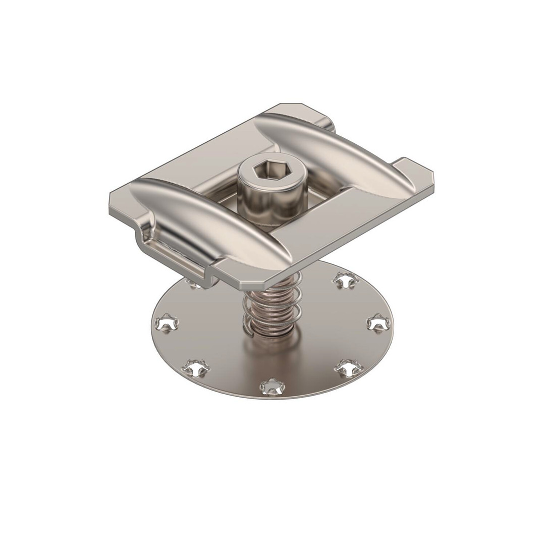 Zwischenklemme mit Feder zum Befestigen von Photovoltaik-Modulen auf Trägerprofilen. Geeignet für Schlitzweite 10 mm. Schraubbare Befestigung des PV-Moduls mit Innensechskant-Schlüssel Größe 6.