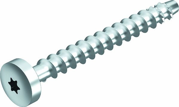 Schraubanker zur direkten Montage ohne Dübel in gerissenem und ungerissenem Beton sowie Mauerwerk. Mit Rundkopf für universelle Befestigungen. TX-Antrieb T30Gemäß EAD geprüftes, CE-gekennzeichnetes Bauprodukt mit Europäisch Technischer Bewertung (ETA) und Anwendbarkeitsnachweis. Tragfähigkeiten unter Brandbelastung bis zur Feuerwiderstandsklasse R120 nachgewiesen.