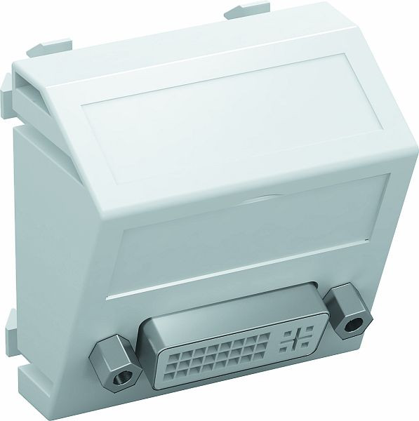 | Kurzbeschreibung | Multimediaträger DVI Buchse mit Schraubanschluss 45x45mm Polycarbonat reinweiß RAL 9010 |