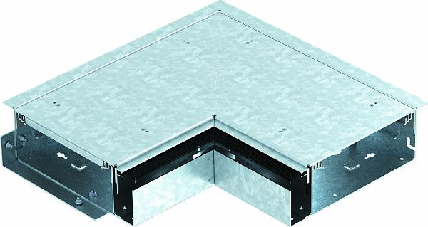 Montagefertiges Außeneck, bestehend aus Kanalunterteil, zwei Deckeln, höhenverstellbaren Seitenprofilen und wandseitig angeordneter Bürstenleiste zur Leitungsausführung. Im Lieferumfang enthalten sind eine Deckelstoßdichtung und ein Verbinder.