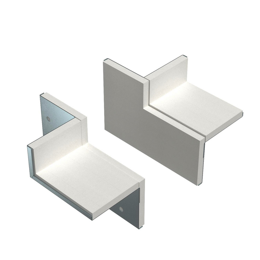 Wandanschlusskragen, 2-seitig mit integrierter Dichtung für Installationskanal PYROLINE® Rapid PLM. Zur Montage im Bereich von Wand- und Deckenanschlüssen sowie Wanddurchführungen in Raumecken. Set bestehend aus 2 entgegengesetzten Bauteilen, passend für Decken- oder Wandmontage des Installationskanals.