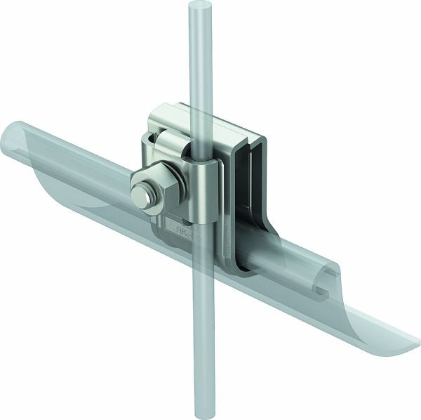 für bis zu zwei Rundleiter Rd 8, mit Doppelüberleger, passend für alle Wulststärken, mit 1 Flacherundscrabe M 10 x 45, nach DIN EN 50164-1 geprüft