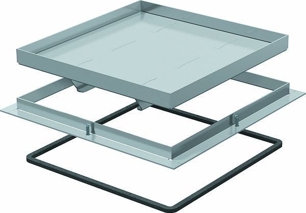 Rahmenkassette Schwerlast "blind" für die Herstellung einer Revisionsöffnung in der UZD350-3 in trocken oder nass gepflegten Fußböden. Belastungsklasse 2 bis 20 kN. Nur für glatte Bodenbeläge im Innenbereich geeignet.