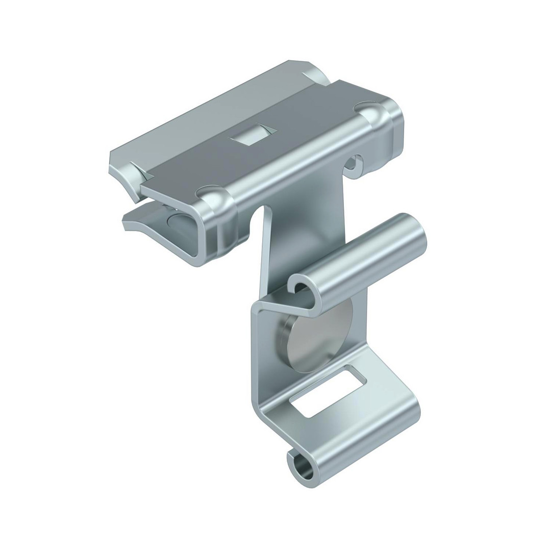Trägerklammer für Kabelbinder zum Montieren von Kabeln und Rohren. Befestigung an Stahträgern durch Aufschlagen. Kabelbinder nicht im Lieferumfang enthalten.