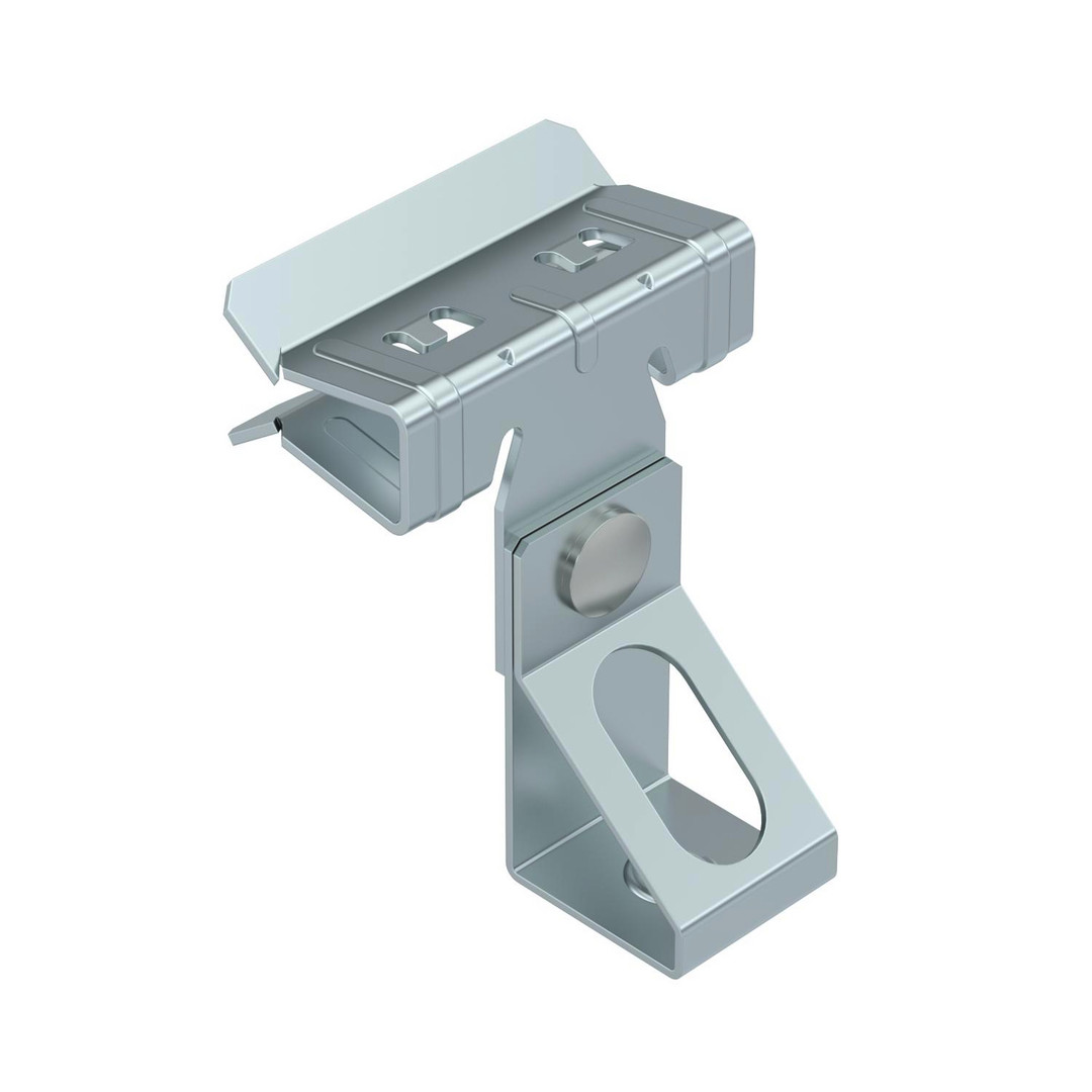 Trägerklammer mit Gewindestangenaufnahme für individuelle Montagelösungen. Befestigung an Stahträgern durch Aufschlagen.