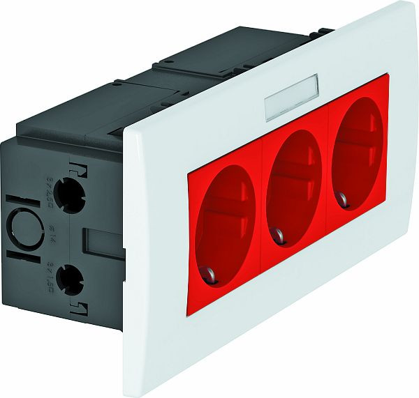 | Kurzbeschreibung | Steckdoseneinheit Modul 45, 3fach 84x185x59mm Polycarbonat signalrot RAL 3001 |