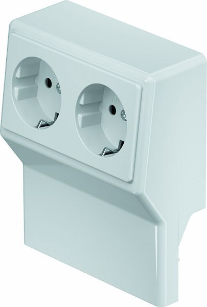 Geräteträger mit vorkonfektionierter 2-fach Schutzkontaktsteckdose für den Sockelleistenkanal in den Kanalbreiten 50 und 70 mm.