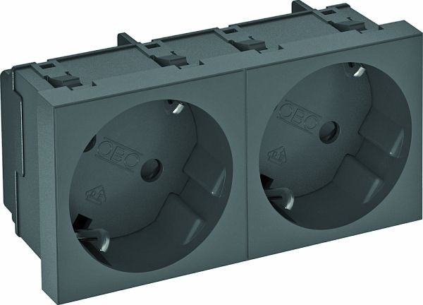| Kurzbeschreibung | Steckdose 33°, 2-fach Schutzkontakt 250V, 10/16A Polycarbonat schwarzgrau RAL 7021 |