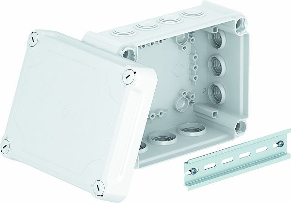 | Kurzbeschreibung | Kabelabzweigkasten mit hohem Deckel 190x150x94 Polypropylen / Polycarbonat lichtgrau RAL 7035 |