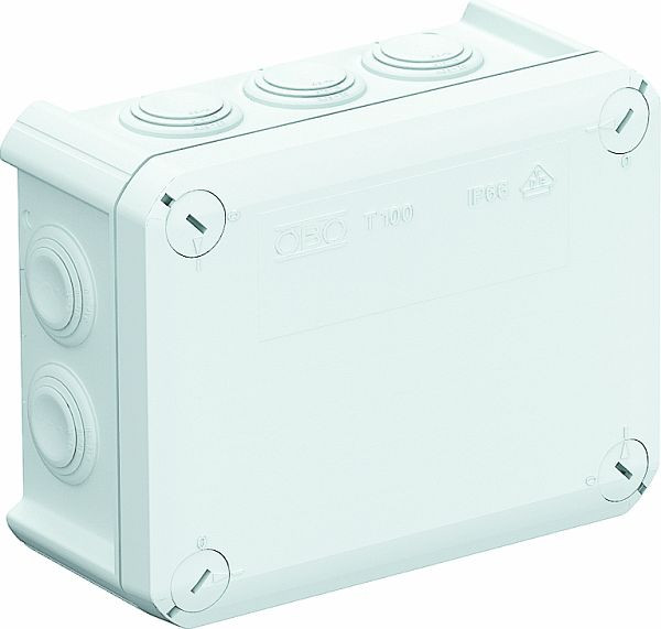 Kabelabzweigkasten gemäß DIN EN 60670. Flammwidrig nach DIN EN 60695-2-11, Prüftemperatur 650°C. Schlagfestigkeit IK07 gemäß DIN EN 50102.