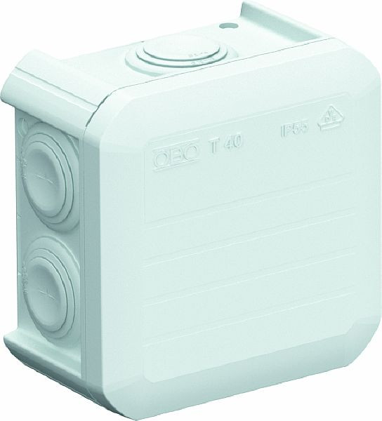 Kabelabzweigkasten gemäß DIN EN 60670. Flammwidrig nach DIN EN 60695-2-11, Prüftemperatur 650°C. Schlagfestigkeit IK07 gemäß DIN EN 50102.