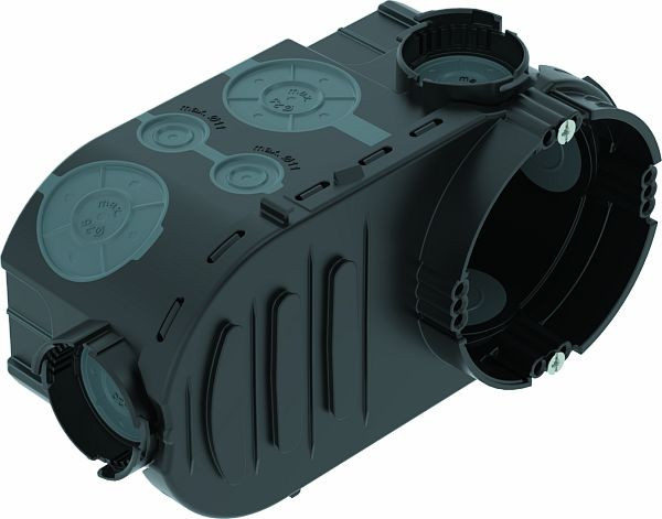 Unterputz-Elektronikdose mit zusätzlichem Klemmraum und luftdichten Membraneinführungen, für den Einsatz in Mauerwerk mit einer Einbautiefe von mindestens 67 mm.