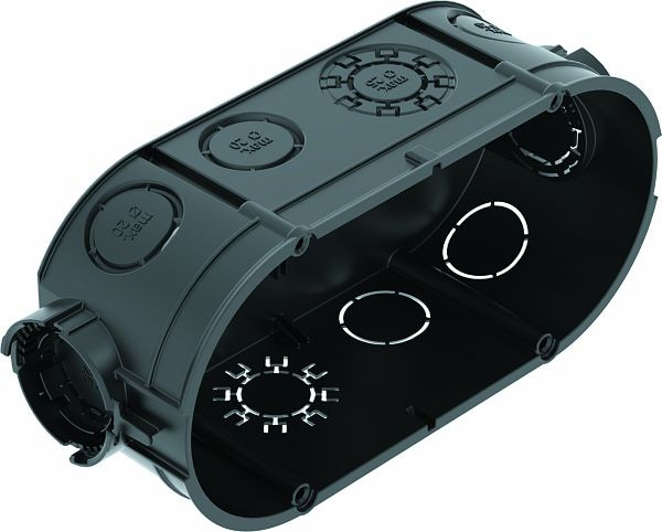 Doppelte Unterputz-Gerätedose für den Einsatz in Mauerwerk mit einer Einbautiefe von mindestens 46 mm.