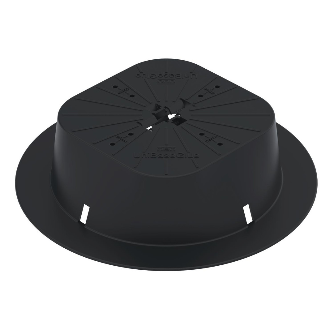 Universal-Standfuß zum Kleben auf Flachdächern. Einsetzbar zur Leitungsführung mit Kabelrinnen oder mit Gitterrinnen in Verbindung mit Dachleitungshalter 165 MBG HGRM. Klebemanschette muss passend zum Untergrund gewählt werden.