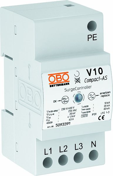 für 230/400V Netze. Anforderungsklasse nach EN 61643-11: Typ 2+3 Verwendbar in 230/400V TT- und TN-Netzen Hochleistungsfähige Varistortechnologie mit 10kA (max. 20kA) Ableitstossstrom pro Pol. Durch seine geringe Baugröße zum Überspannungsschutz in Unterverteilungen und kompakten Schränken geeignet. Mit otischer Funktions- und Defektanzeige. 5 Jahre Gewährleistung