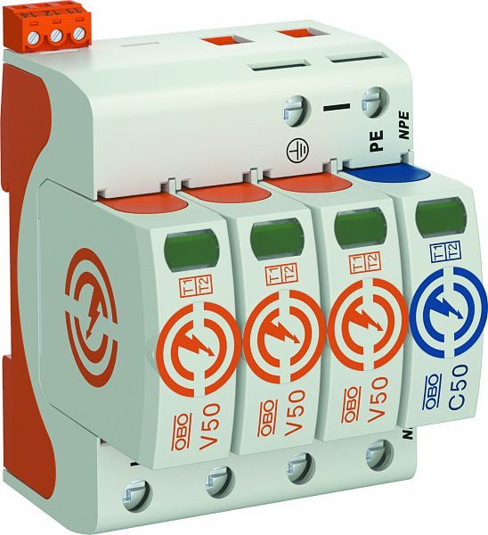 • Blitzstromableitvermögen 12,5 kA (10/350) pro Pol und bis zu 50kA (10/350) gesamt