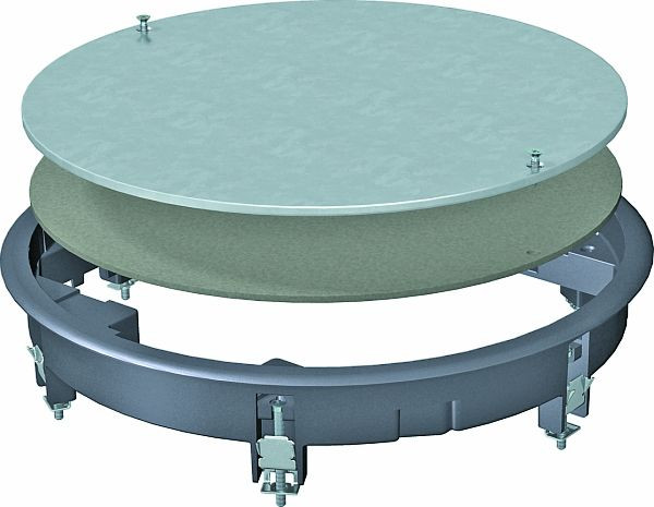 Zugdoseneinsatz zum Blindverschluss einer runden Montageöffnung der Nenngröße R7 in Kanalsystemen sowie in Doppel- und Hohlböden im Innenbereich. Mit Universalbefestigungswinkel.