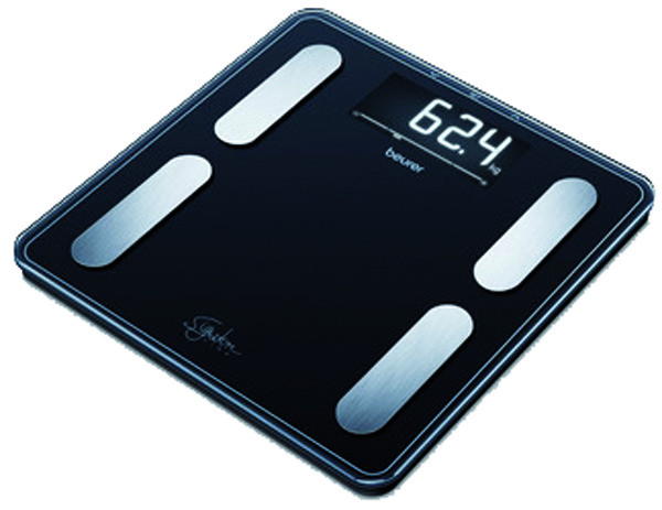 Wiegefläche aus 8mm Sicherheitsglas im unverwechselbaren SignatureLine-Look, beleuchtetes XL-Display, 35 mm Ziffernhöhe, Elektroden aus gebürstetem Edelstahl, Körpergewicht, -fett, -wasser, Muskelanteil, Knochenmasse, Kalorienanzeige AMR/BMR, BMI Berechnung, Interpretation der Messwerte, Einteilung: 100 g/0,1%, 5 Aktivitätsgrade, 10 Speicherplätze, Einschalt-Technik Quick-Start, Umstellung von kg/lb/st, inkl. 3 x 1,5V Batterien AAA, 5 Jahre Garantie