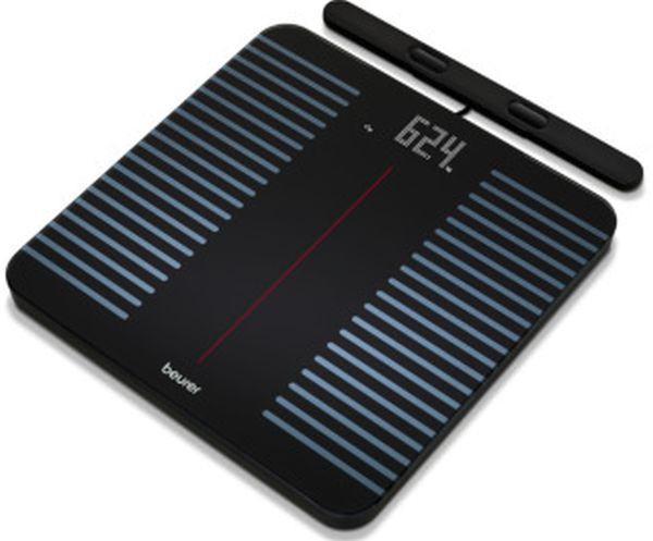 mit ausziehbarem Handteil zur detaillierten Ganzkörperanalyse inkl. Überkreuzmessung mit 8 Elektroden zur genauen Kontrolle der verschiedenen Körperzonen, Vernetzung zwischen Smartphone und Waage: dank WIFI- und Bluetooth®-Synchronisation werden deine Messwerte automatisch in die App „beurer HealthManager Pro“ übertragen, in der sie übersichtlich dargestellt und eingeordnet werden - ideal zur Analyse von Fortschritten, Training oder Ernährung, Trittfläche aus Sicherheitsglas mit ITO-Oberflächenveredelung, Dot-Matrix-Look, Magic LED Display (erscheint nur bei der Messung), Ziffernhöhe 28 mm, kann mittels Überkreuzmessung zuverlässig und präzise insgesamt 25 Körperdaten ermitteln: BMI,Gesamte Muskelmasse (inkl. Organmuskeln), Herzfrequenz, Kalorienanzeige (AMR), Kalorienanzeige (BMR), Knochenmasse, Körperfett, Körperwasser, Lean Body Mass, Metabolisches Alter, Muskelanteil, Protein, Soft Lean Mass, Viszeralfett), Einteilung: 100 g/0,1%, 8 Benutzerspeicher mit automatischer Benutzererkennung, Ein- und Abschaltautomatik, 5 Jahre Garantie