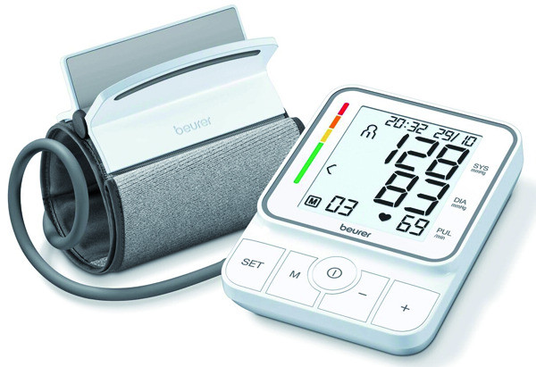 vollautomatisches Blutdruck- und Pulsmessung am Oberarm, Inflation-Technology: schnelle und komfortable Messung bereits während des Aufpumpens, Einstufung der Messergebnisse mit farbiger Skala, erkennt und warnt bei eventuellen Arrhythmie-Erkennung, innovative easyClip-Manschette (22-42 cm) - einfaches Anlegen mit nur einem Handgriff, weiß beleuchtetes, gut ablesbares XL-Display, 2 Benutzerspeicher für je 100 Messwerte, Durchschnitt aller gespeicherten Messwerte, Anzeige von Datum und Uhrzeit, Abschaltautomatik, Meldung bei Anwendungsfehler, Batteriewechselanzeige, Aufbewahrungstasche, inkl. 4 x 1,5 V Batterien AA, 5 Jahre Garantie
