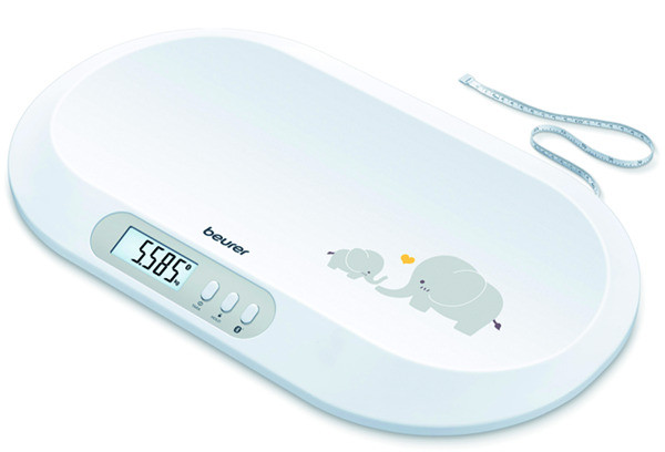 automatische und manuelle Hold-Funktion zur Erfassung des Gewichts bei strampelnden Babys, Datenübertragung zwischen Smartphone und Waage via Bluetooth®, freier Download der App „beurer BabyCare“, großes LCD-Display (Ziffernhöhe 23 mm), gewölbte Wiegefläche, 20 kg Tragkraft, 5 g Einteilung, 10 Messwert-Speicherplätze, integriertes Maßband zum Abmessen der Körpergröße, rutschfeste abriebsichere Gummifüße, Einschalttechnik: Button-On, Abschaltautomatik, 5 Jahre Garantie